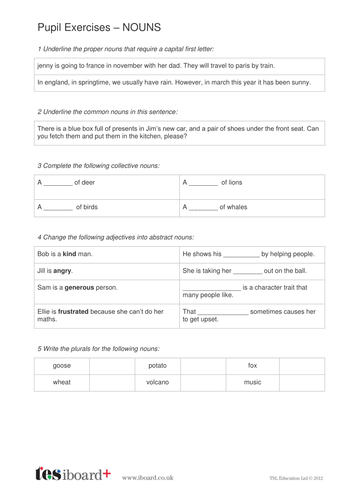 Nouns Worksheet Year 6 Spag Teaching Resources
